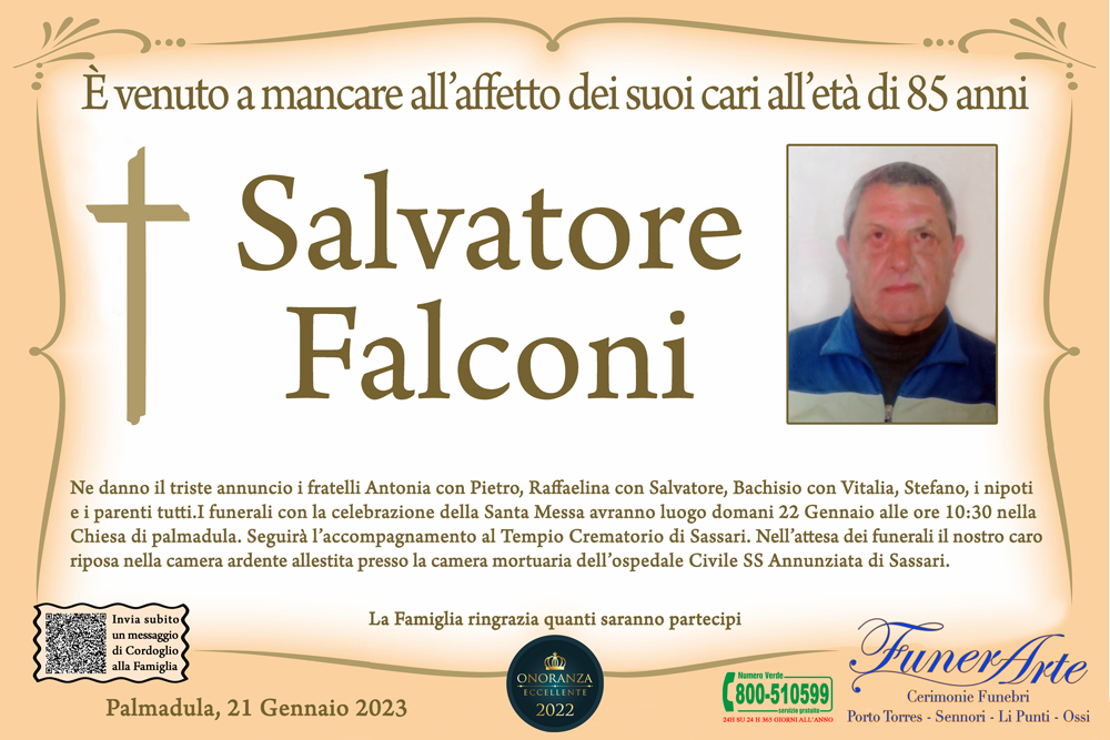 Ne danno il triste annuncio i fratelli Antonia con Pietro, Raffaelina con Salvatore, Bachisio con Vitalia, Stefano, i nipoti e i parenti tutti.I funerali con la celebrazione della Santa Messa avranno luogo domani 22 Gennaio alle ore 10:30 nella Chiesa di palmadula. Seguirà l’accompagnamento al Tempio Crematorio di Sassari. Nell’attesa dei funerali il nostro caro riposa nella camera ardente allestita presso la camera mortuaria dell’ospedale Civile SS Annunziata di Sassari.